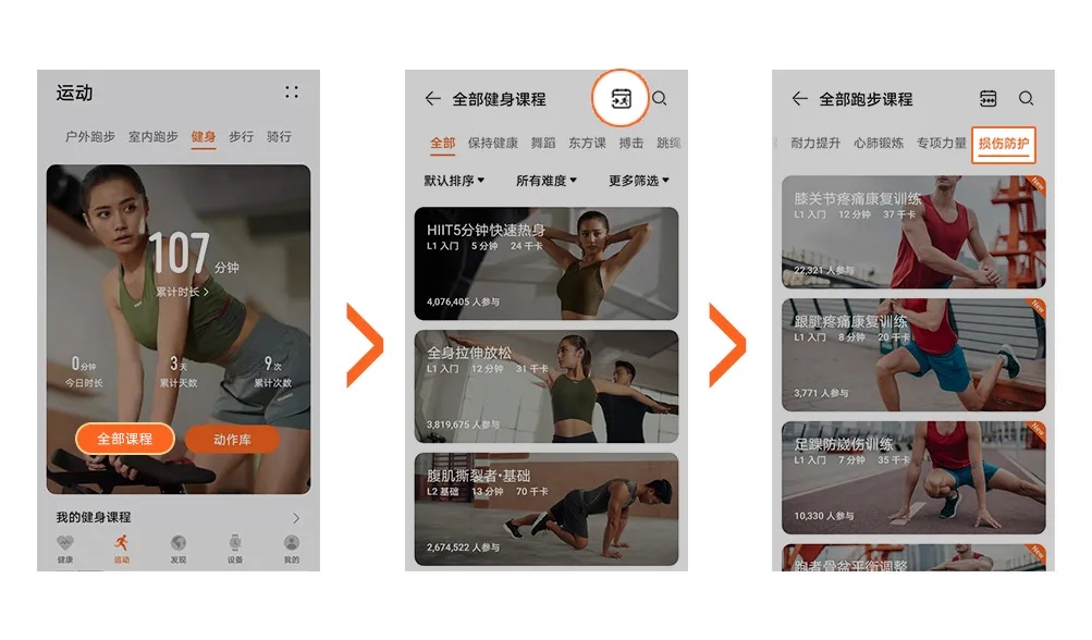喜欢跑步的健身者们注意做好科学管理和损伤防护,现在打开华为运动健康APP,选择运动—健身—全部课程—全部跑步课程—损伤防护,开启健康跑步之旅。(点击下方图片,直接进入)